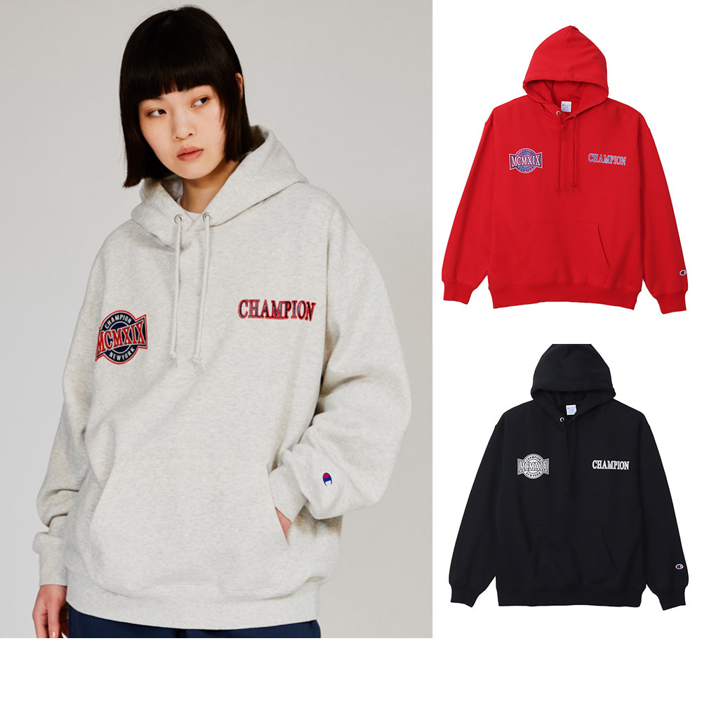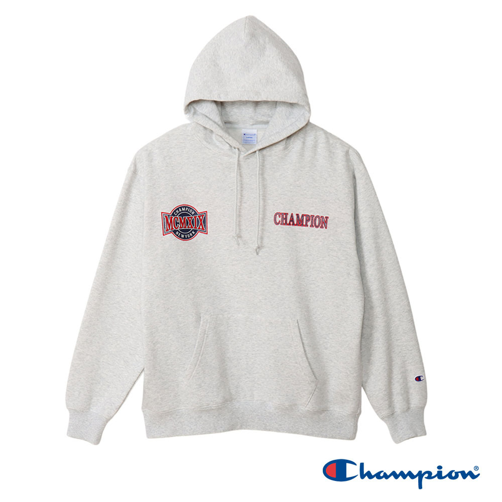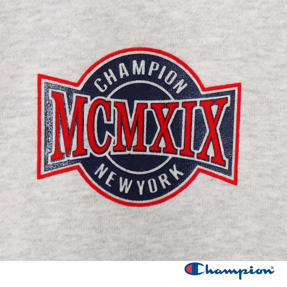 左胸印有「CHAMPION」字樣,右胸印有「品牌創立年羅馬數字」植絨印花和橡膠印花,靈感來自美國大型運動賽事會徽。