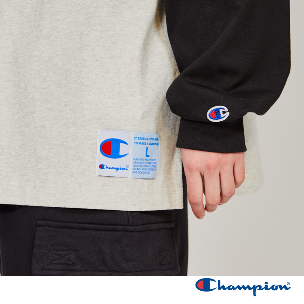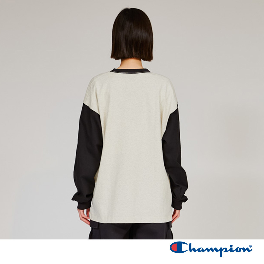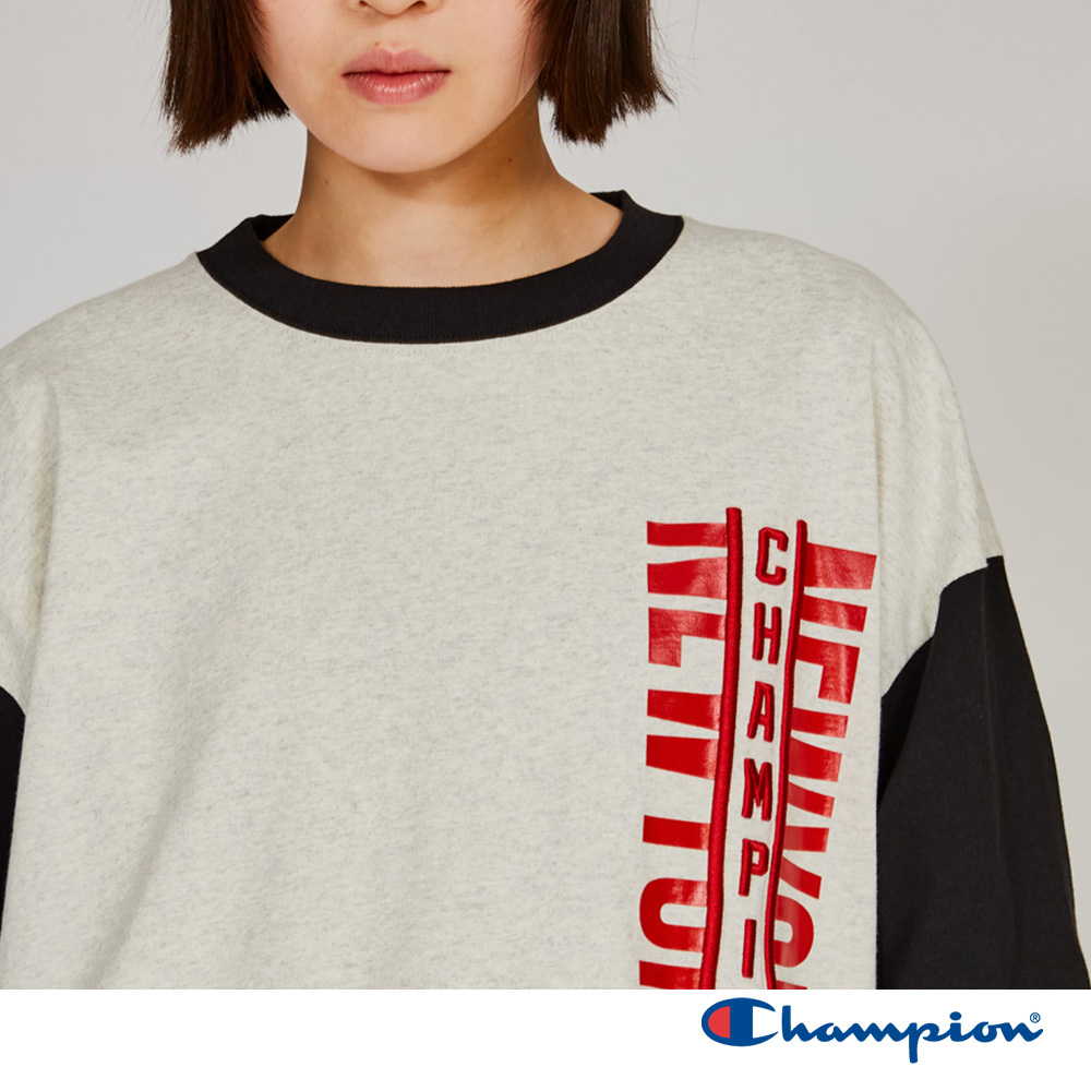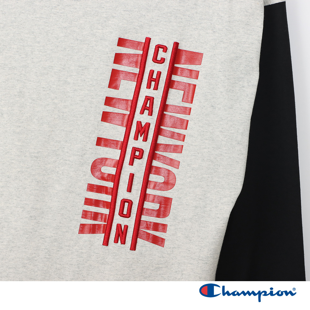 領子和袖子採撞色拼接設計,下擺有開衩。左胸印有「NEW YORK」印花和「CHAMPION」立體刺繡相結合的圖案。