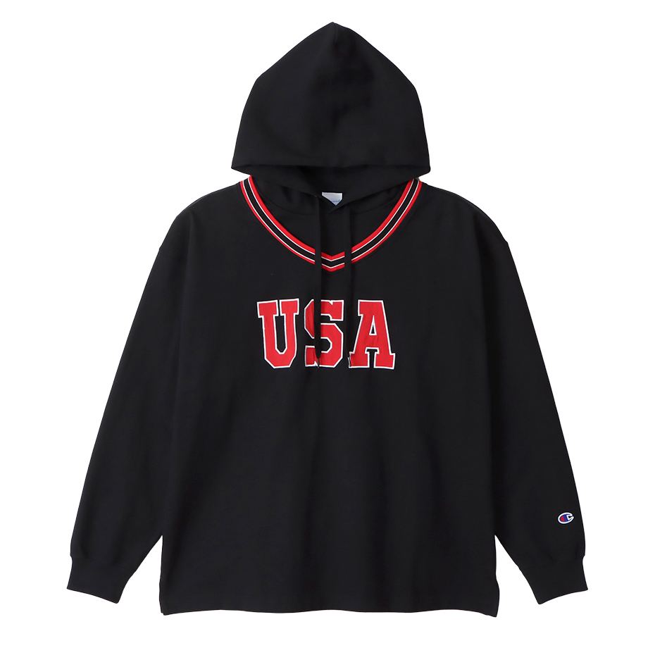 男款-AS 印花連帽長Tee-黑色(C3-W424-090)