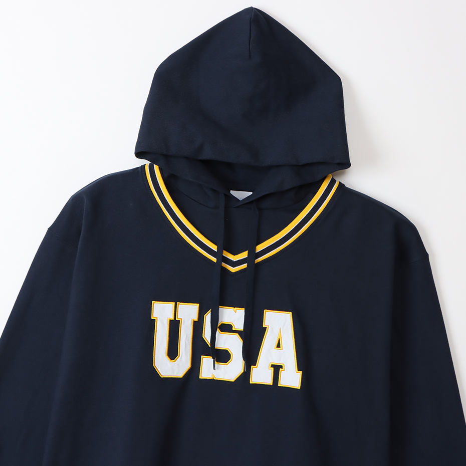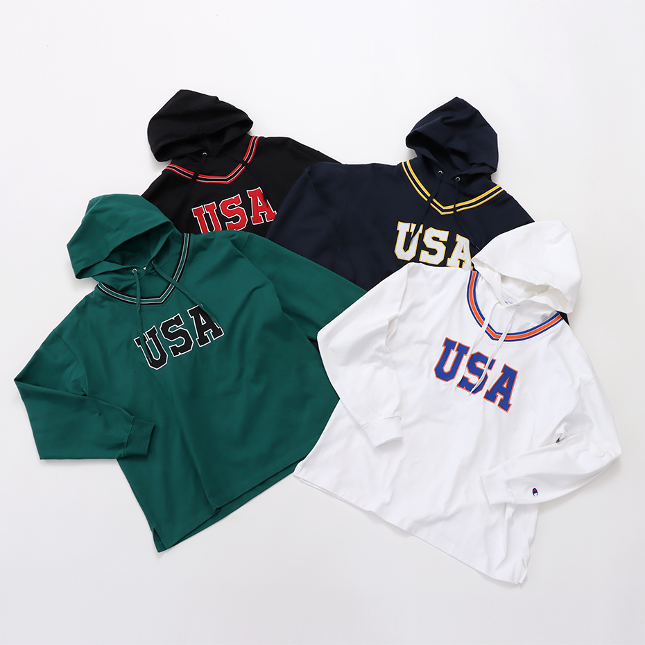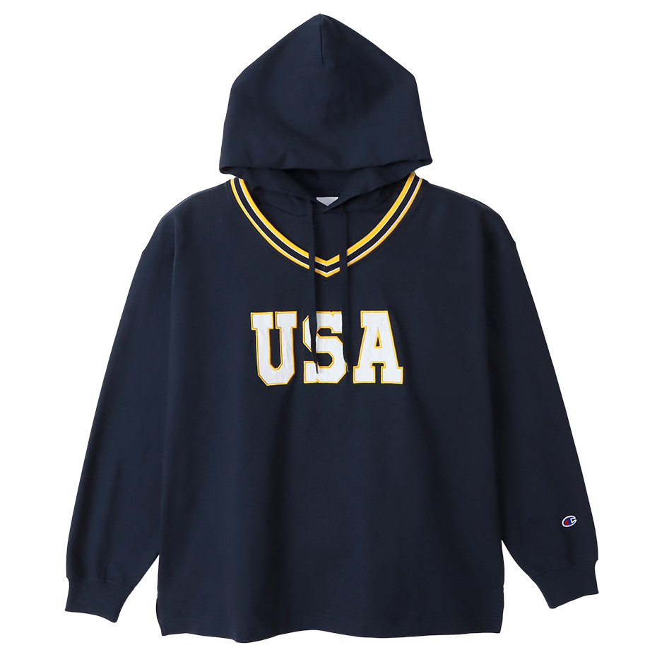 男款-Champion AS 印花連帽長Tee-深藍色(C3-W424-370)