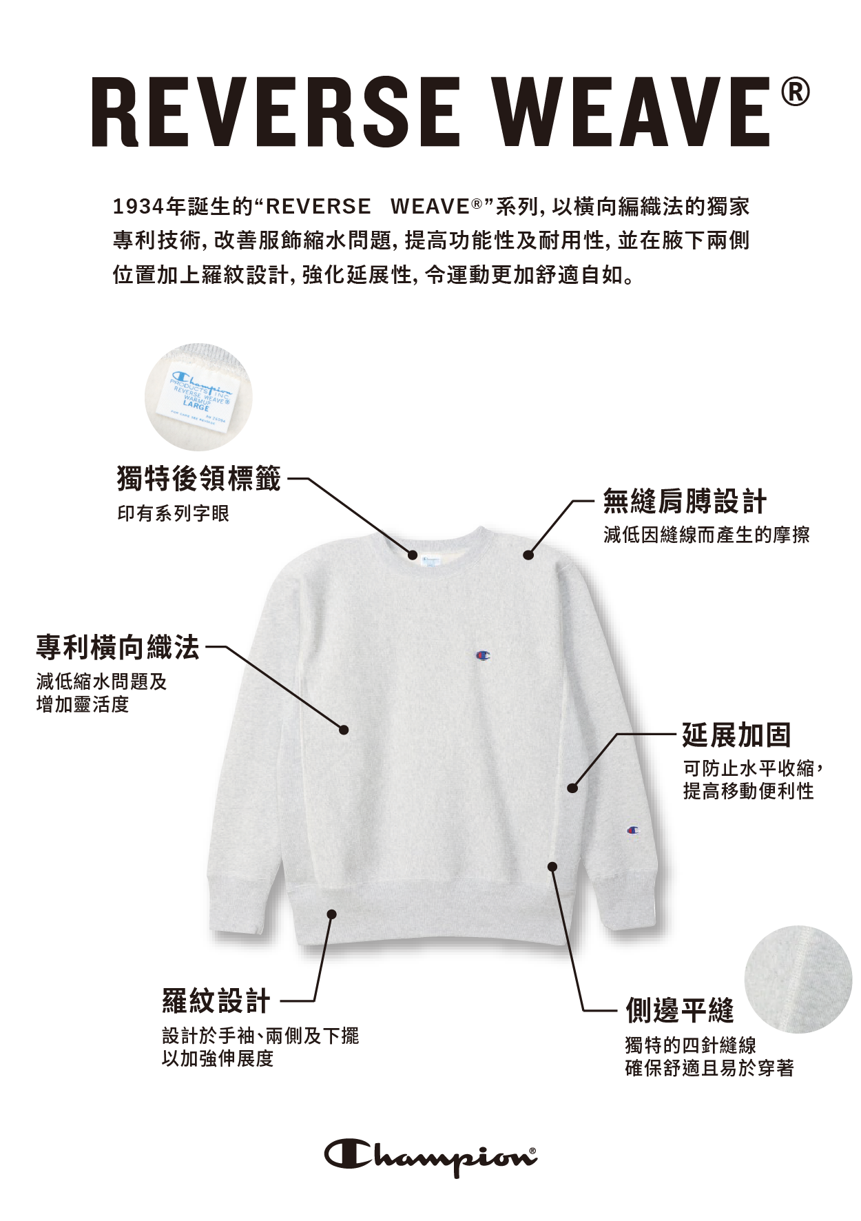 材質:Reverse Weave® 9.4oz Jersey(100%棉)