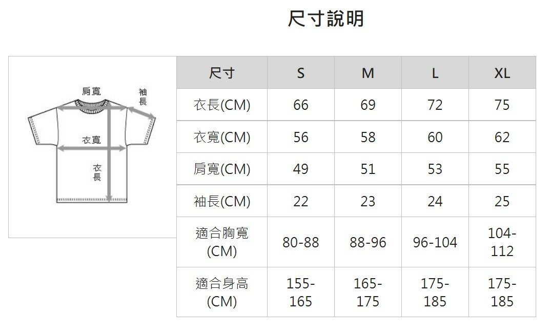 材料 : 16s / 1 OE Jersey(100%棉)