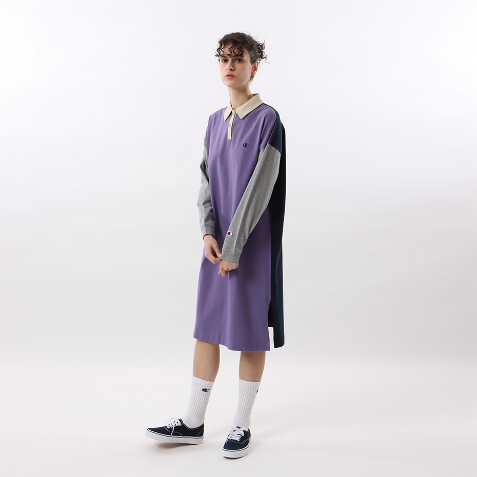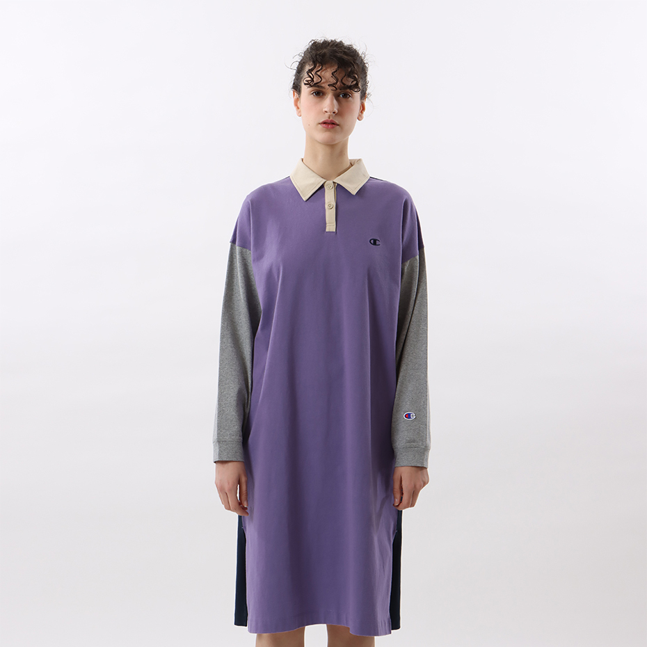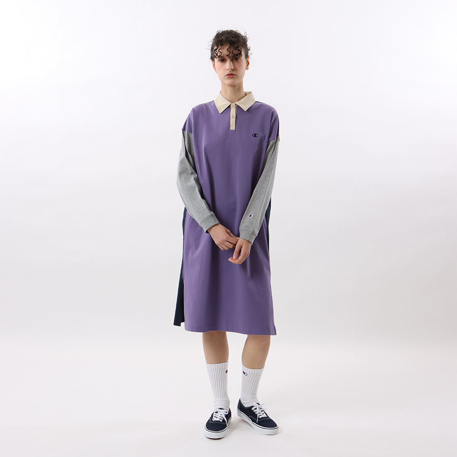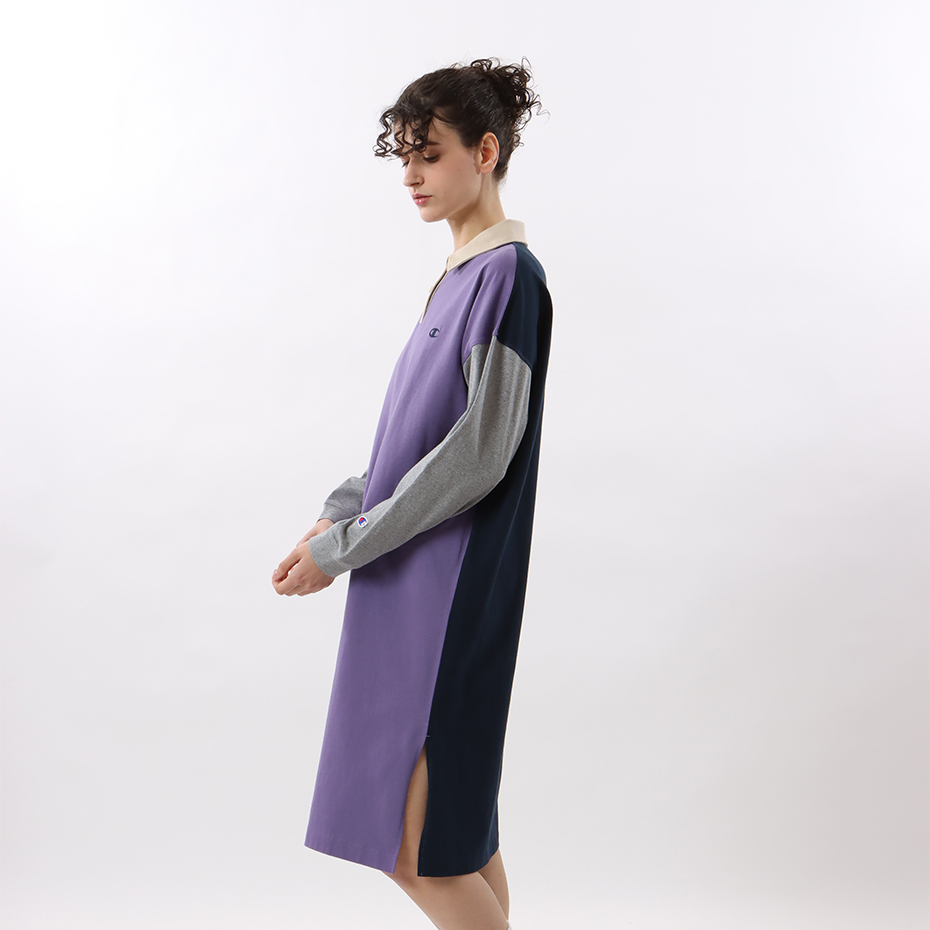 女款 -CASUAL POLO拼接連身洋裝-紫色(CW-W411-240)