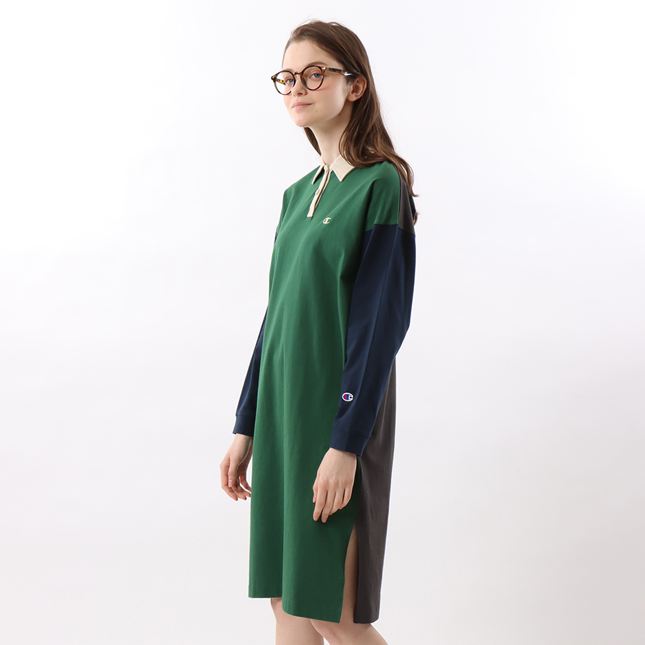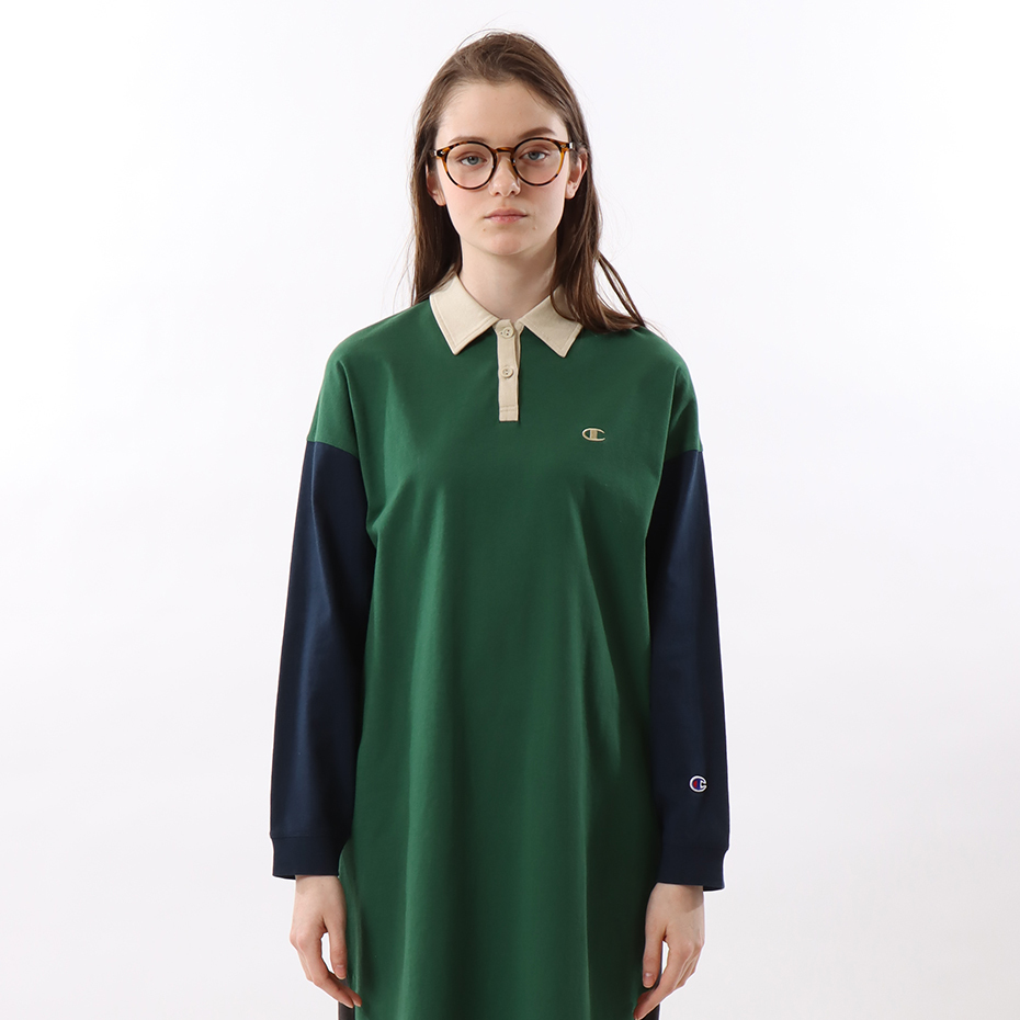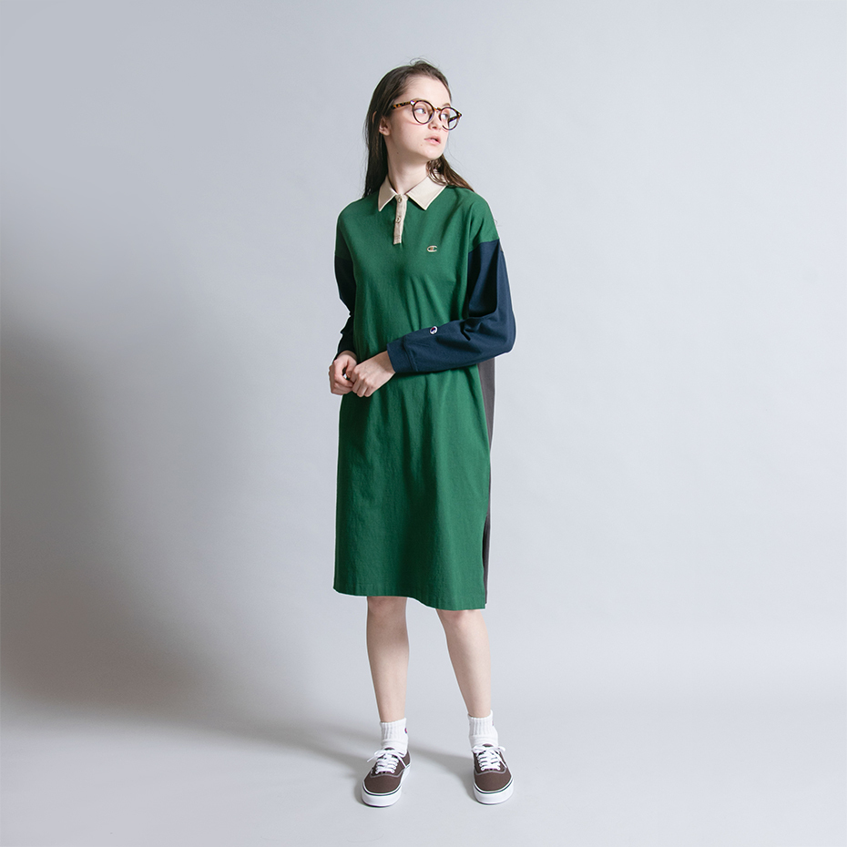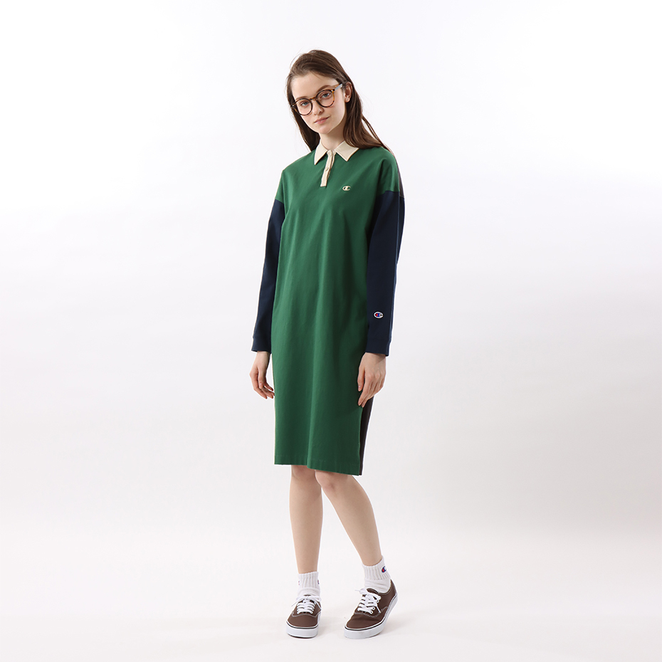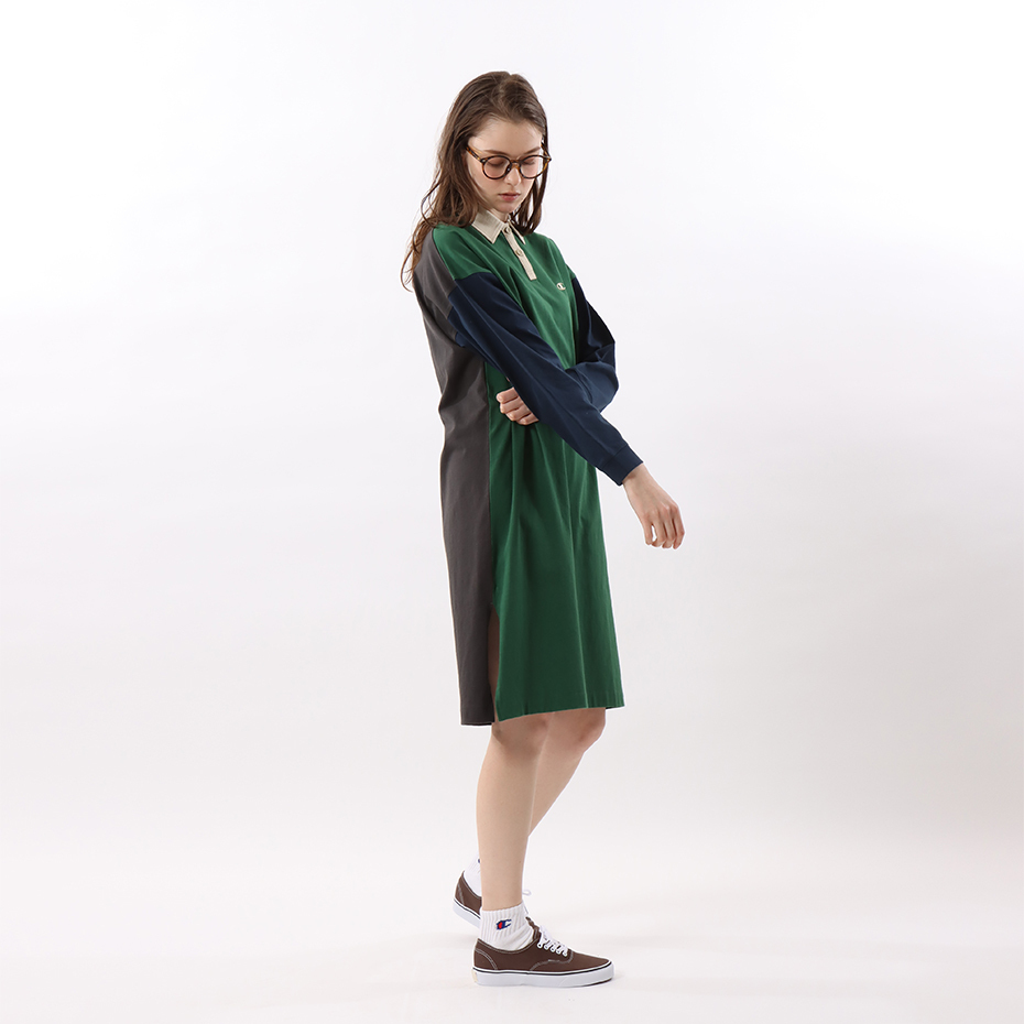 女款 -CASUAL POLO拼接連身洋裝-綠色(CW-W411-240)