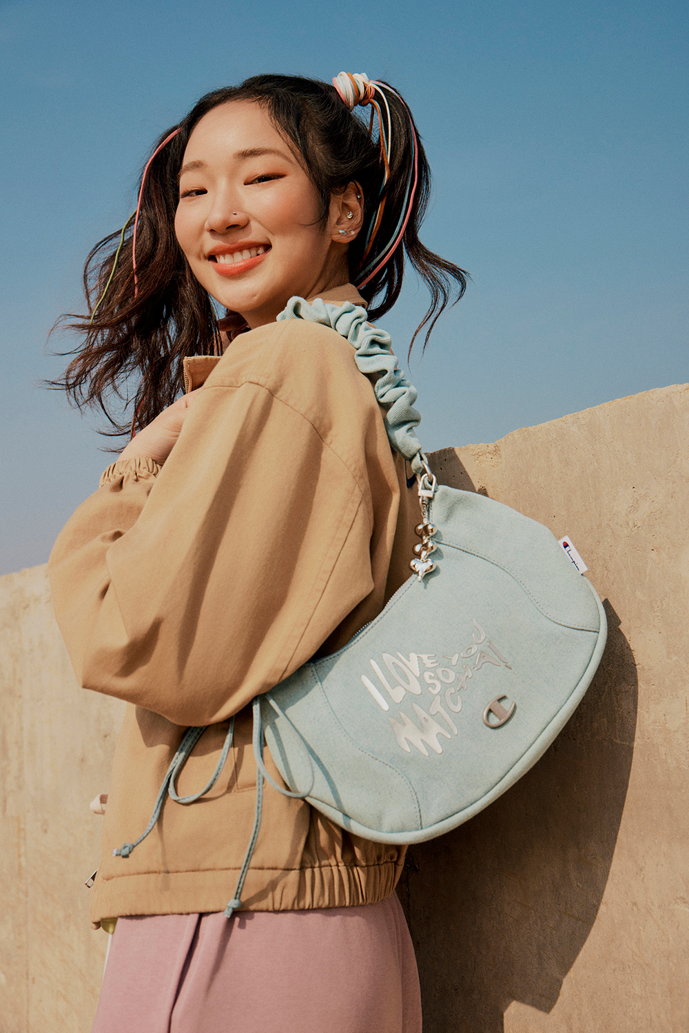 精緻時尚的腋下包型,肩帶附有抽繩可調節長度。