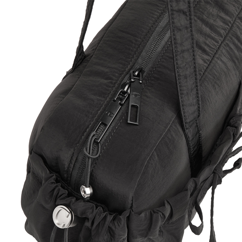 •選用輕盈尼龍面料,展現俐落中帶點柔美的日常風格。