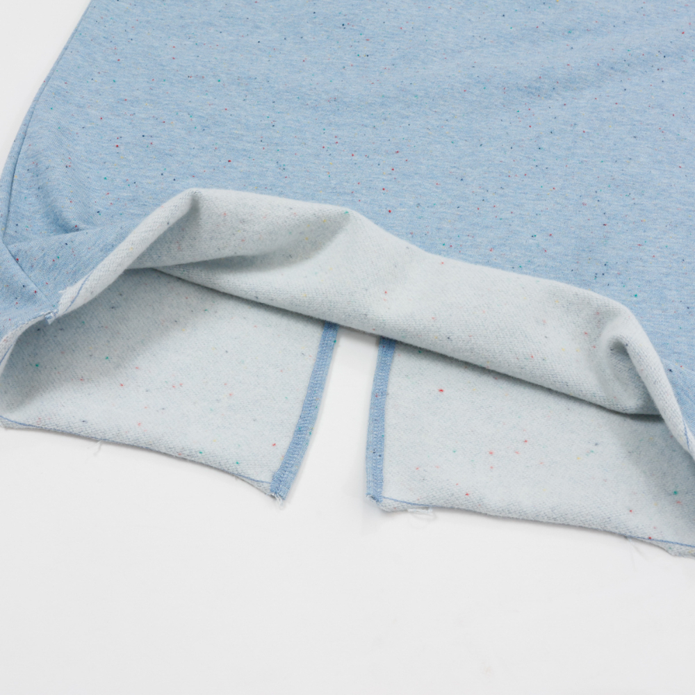 布料採用「nep」紗線,形成色彩繽紛的不規則圓點圖案,這種紗線纖維相互交織形成許多結點(塊狀)。