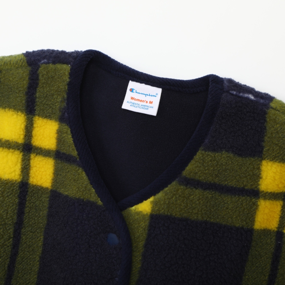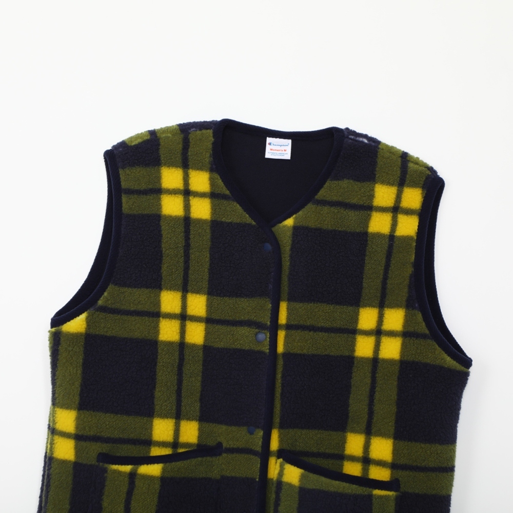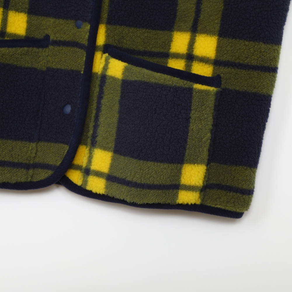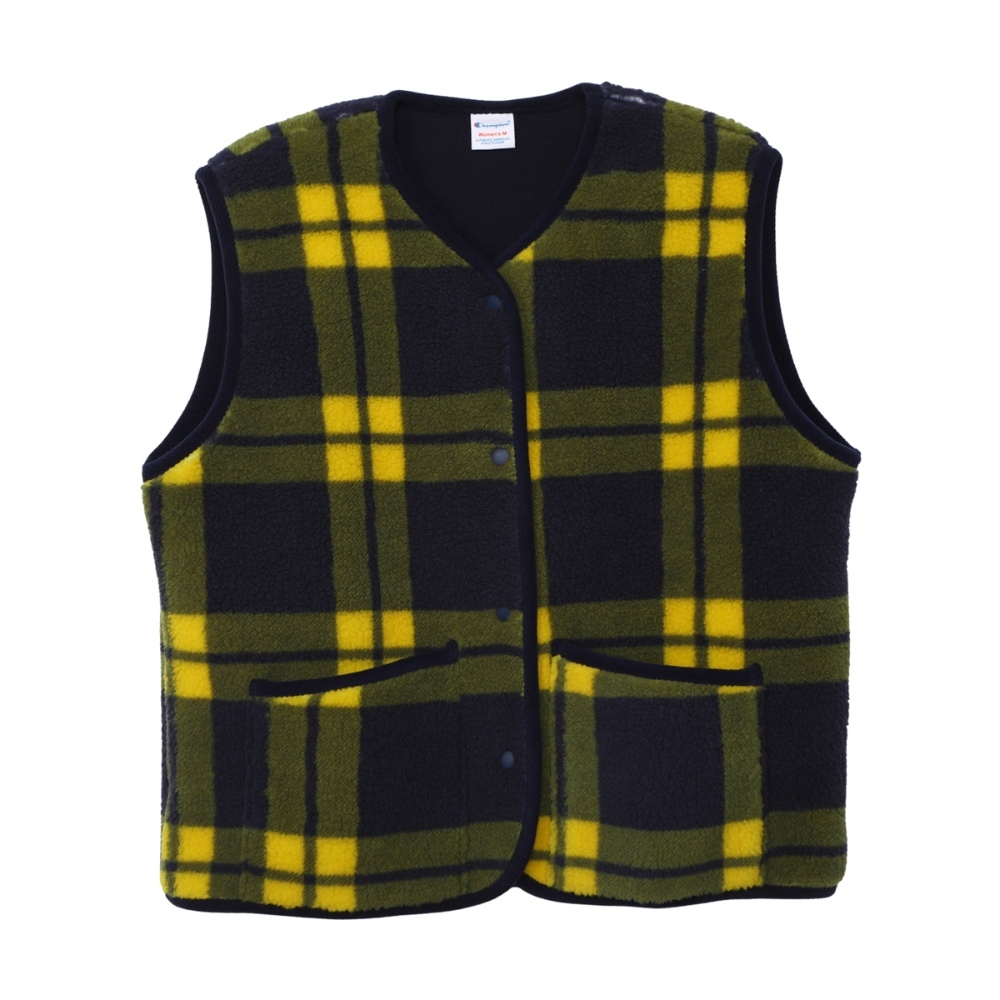 這款按扣背心採用100%聚酯絨布,飾有格紋印花,前後身觸感柔軟。