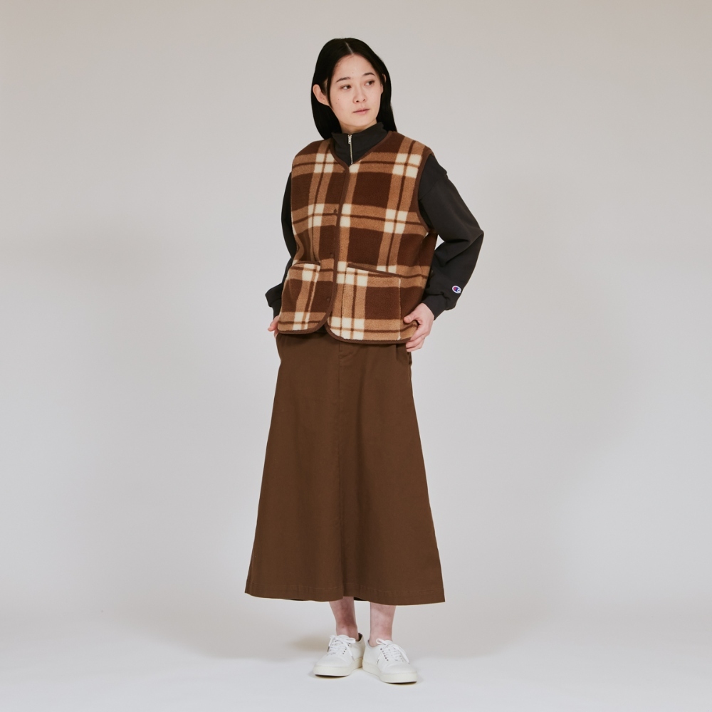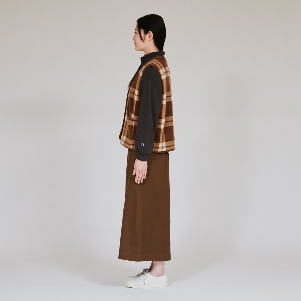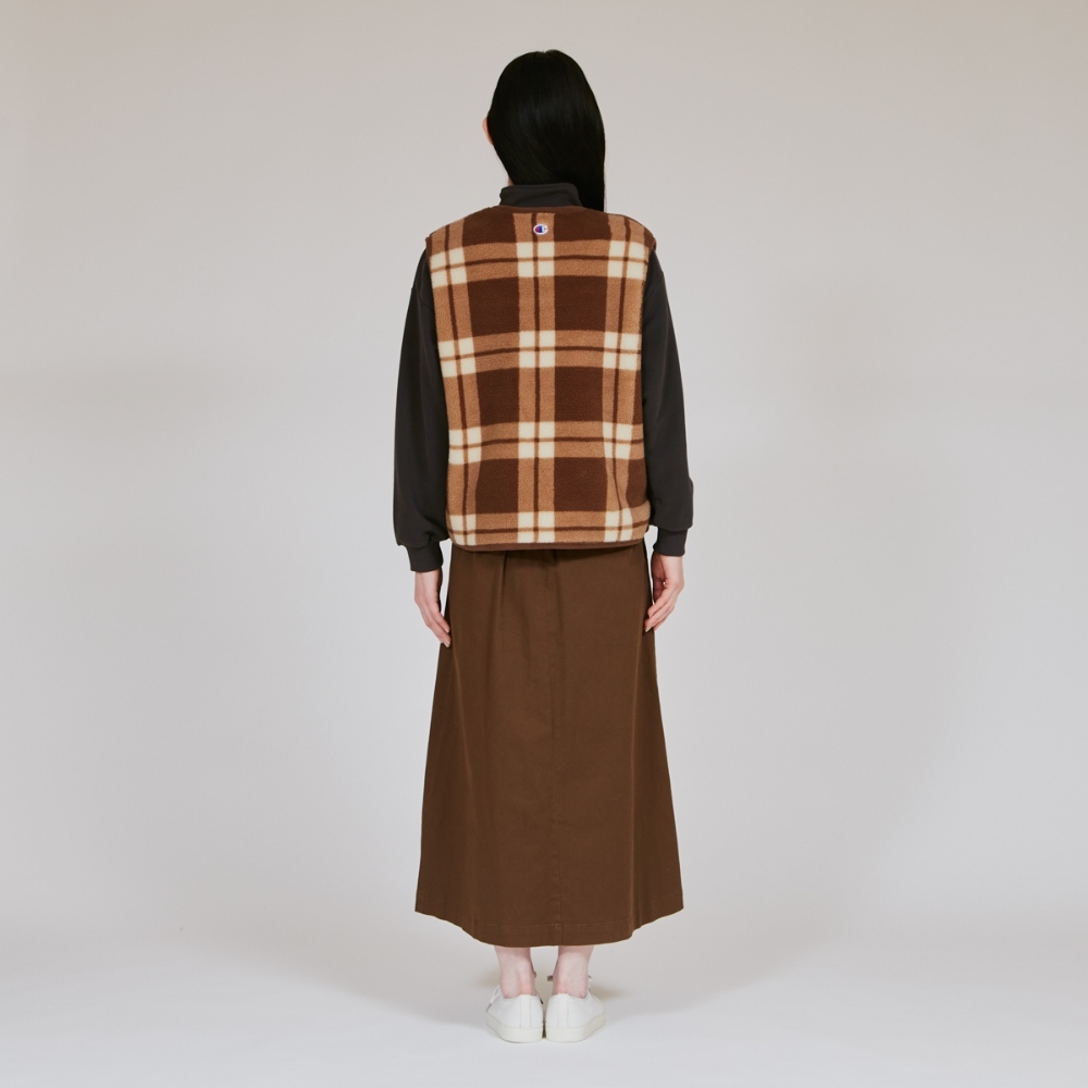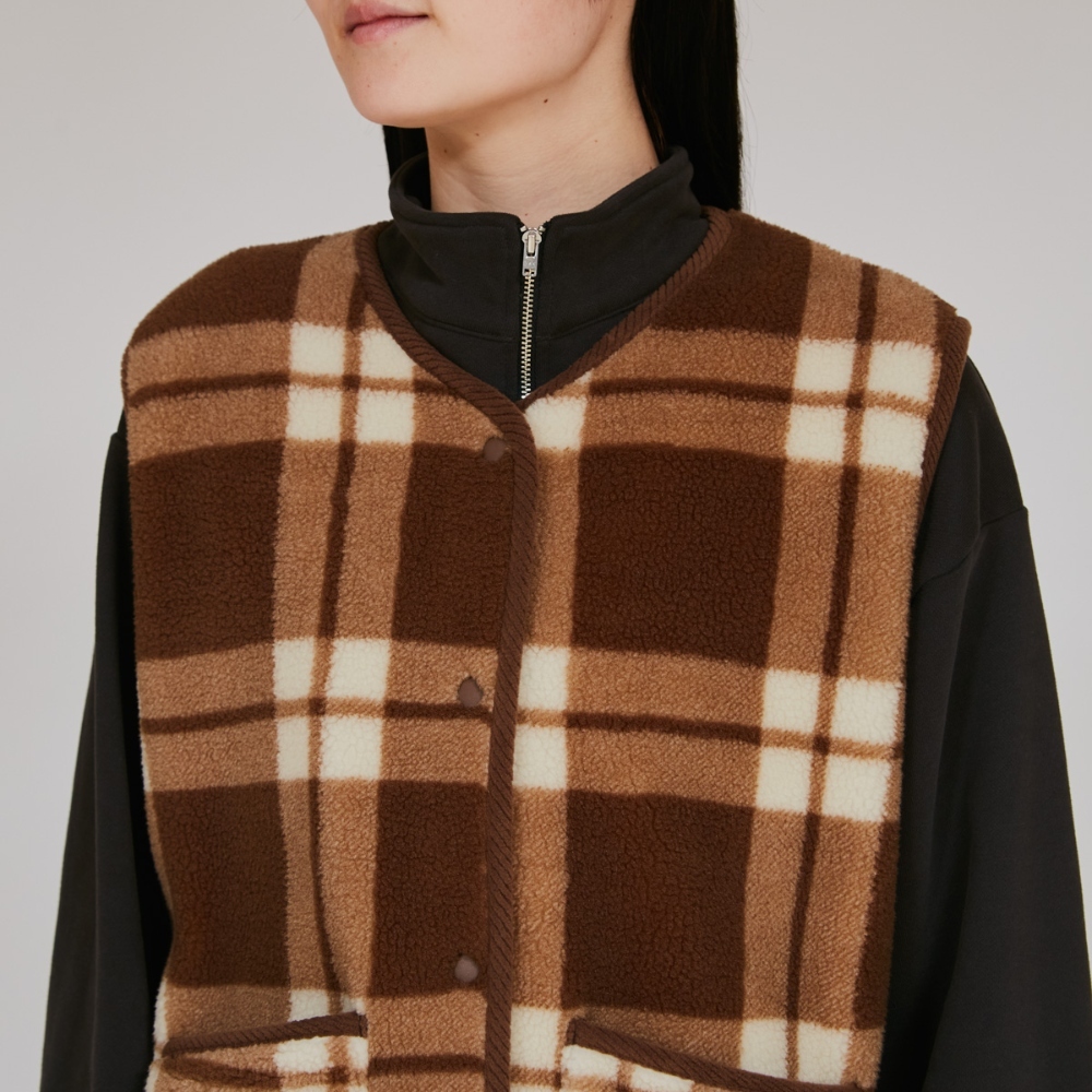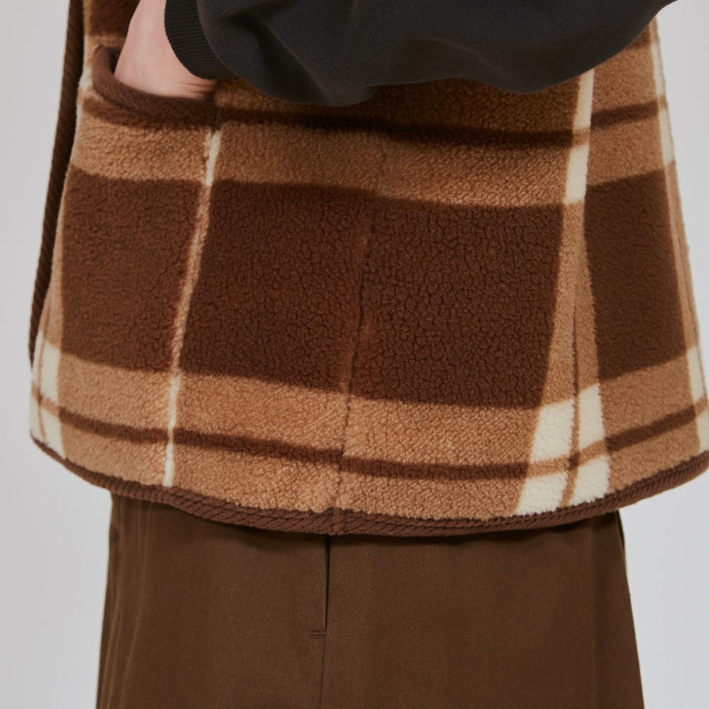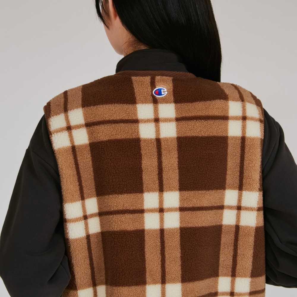 這款按扣背心採用100%聚酯絨布,飾有格紋印花,前後身觸感柔軟。