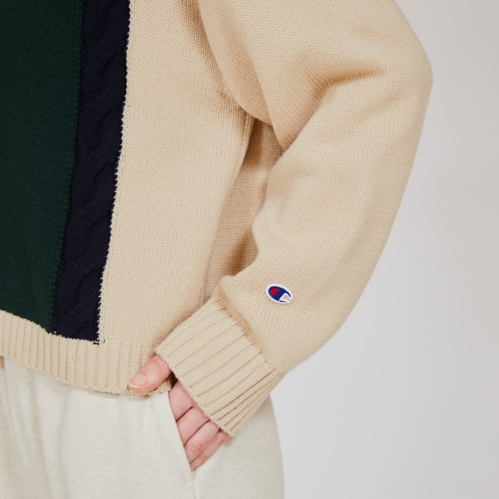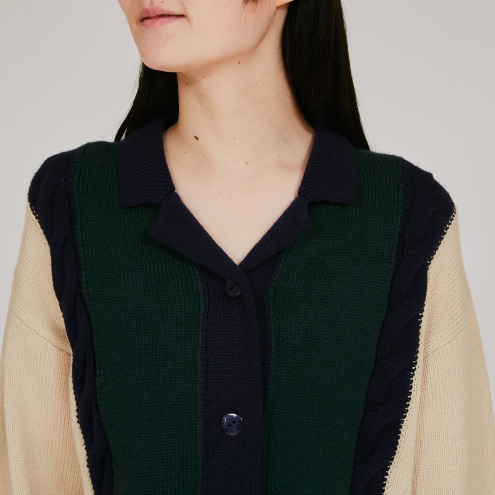 其設計靈感來自祖父的衣櫥,將羅紋針織(透過正反針交替編織營造出富有質感的外觀)與絞花針織(營造出類似粗繩交織的圖案)巧妙融合。