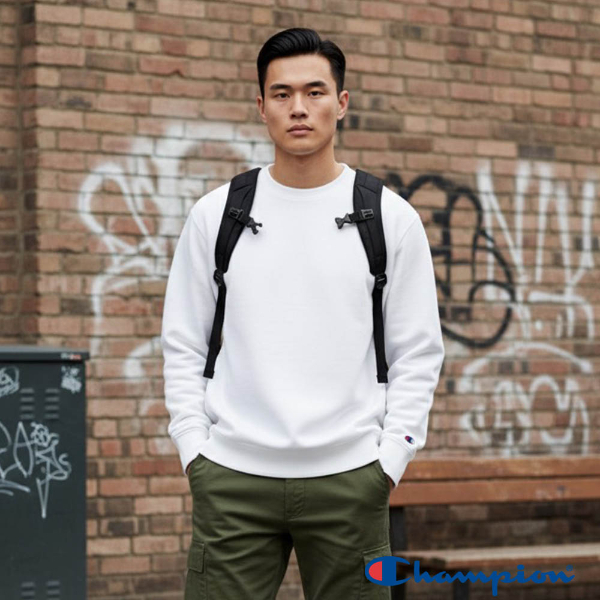 男女款- 小C素面內刷毛長袖大學T重磅9.0 OZ- 白色 (美規大學T/保暖大尺碼)