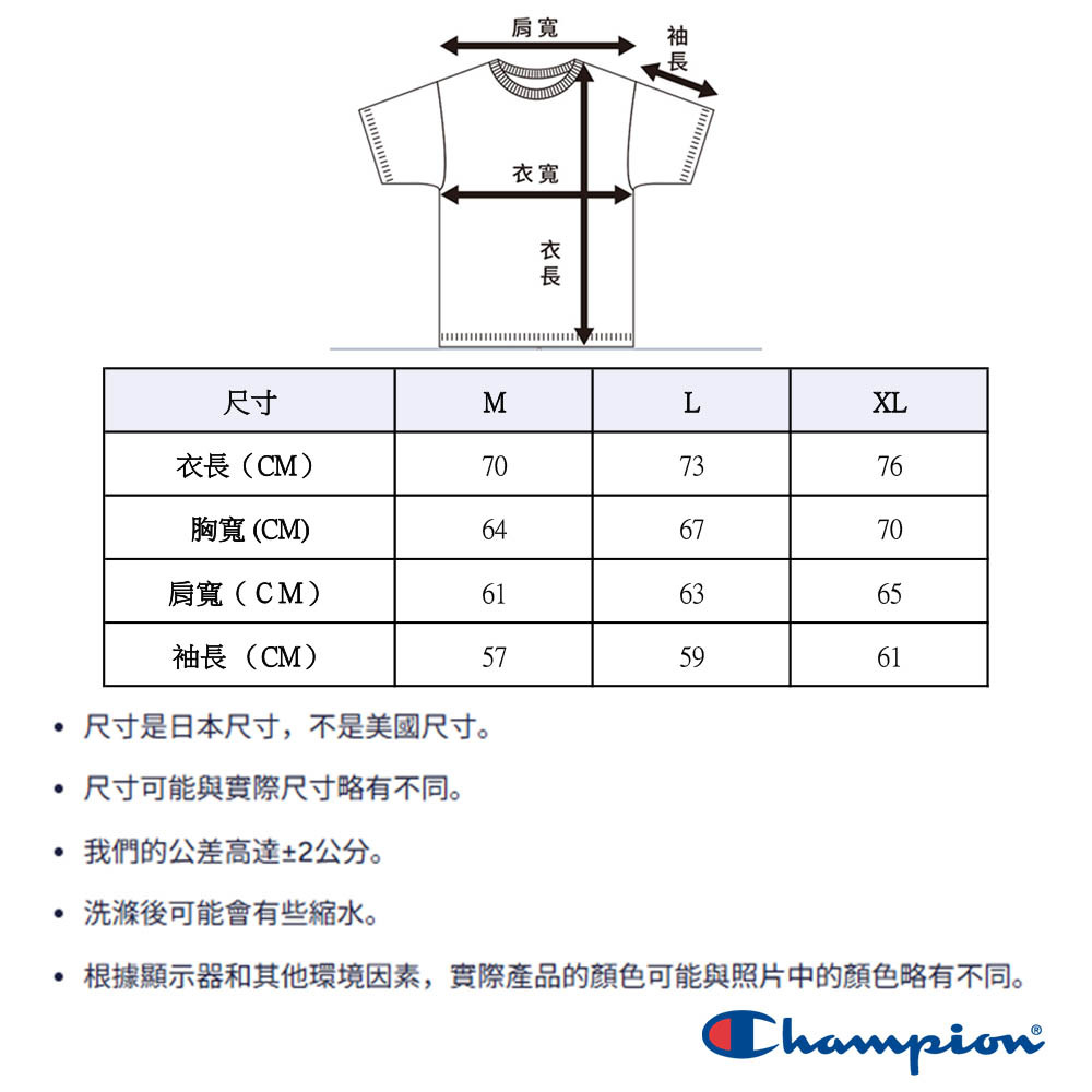 • 左胸繡有 Champion® 標誌和倒三角形的「AUTHENTIC ATHLETICS」字樣。