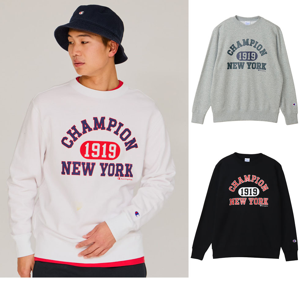 胸前採用拱形「CHAMPION」和直線形「NEW YORK」圖案印花,並飾有Champion創始年份「1919」的膠囊圖案。