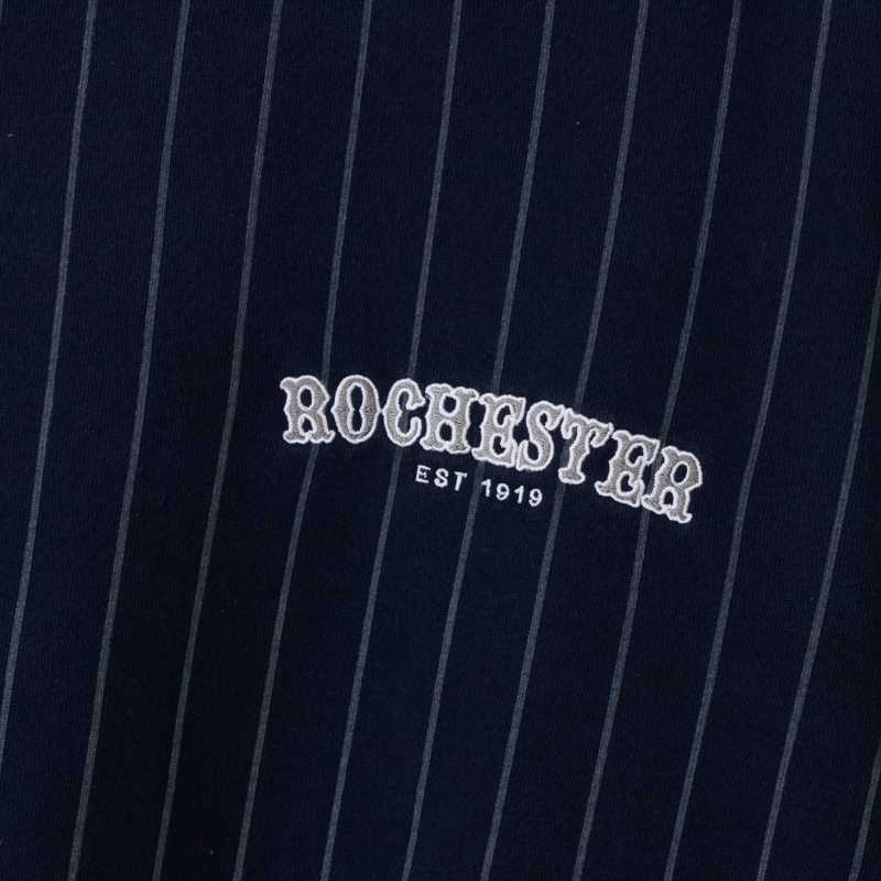 左胸印有Champion的誕生地「ROCHESTER」(羅徹斯特),採用經典的「花形」字體,以及創立年份「1919」。