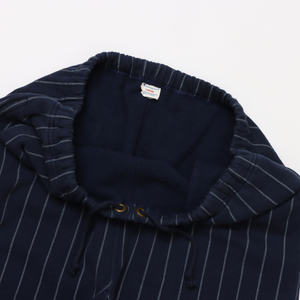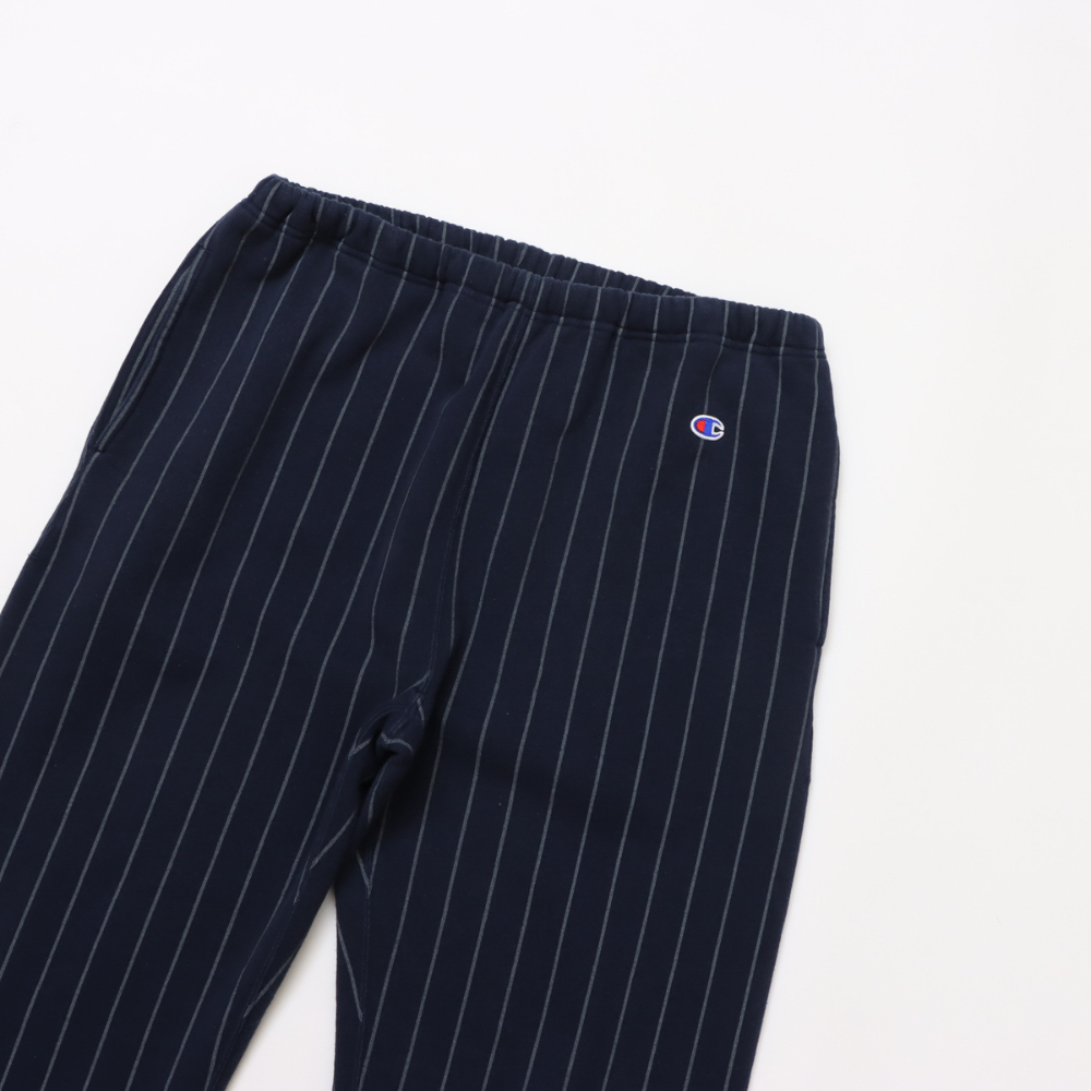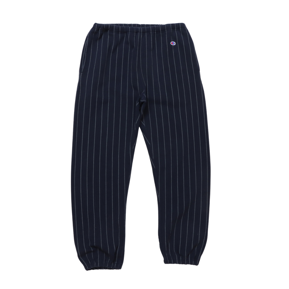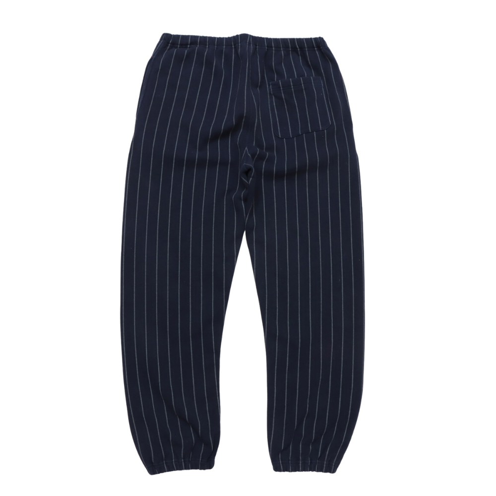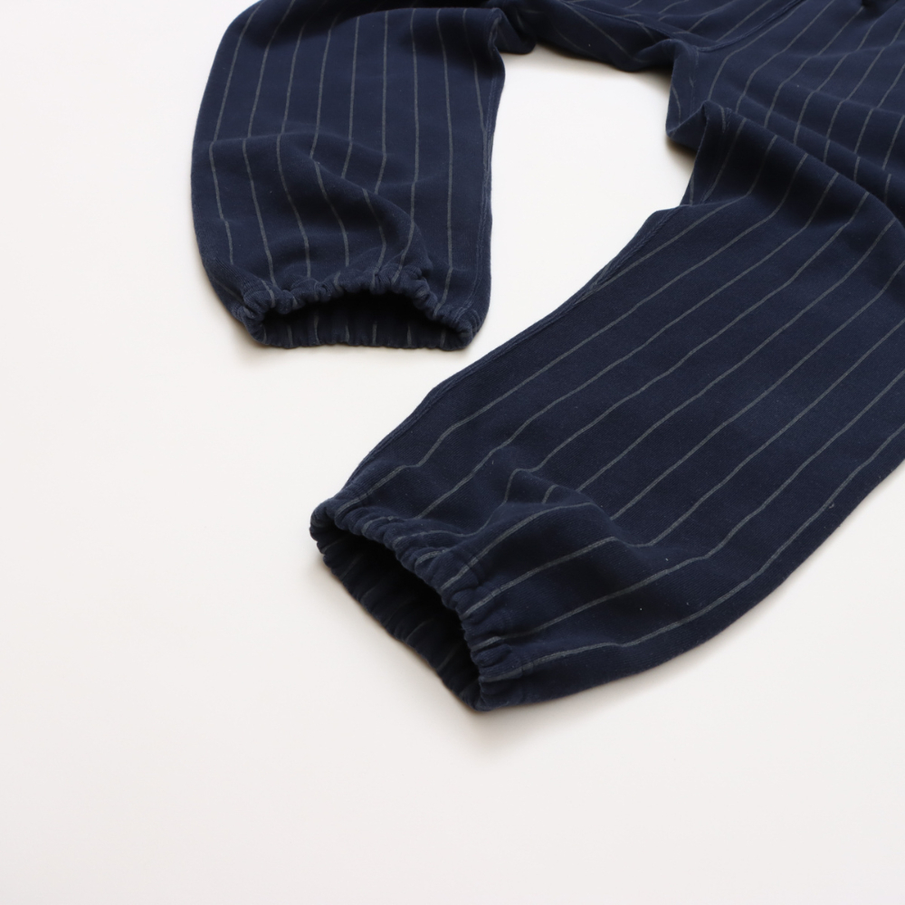 其細條紋圖案令人聯想到棒球服。 「半拉絨」設計,拉絨程度較低,無論季節如何,都能持久穿著。直筒廓形,搭配鬆緊腰帶和可調式抽繩。經典的姓名標籤採用輕盈的米白色棉布製成,是概念系列的限量版。我們也提供採用相同材質製成的圓領衛衣 (C3-C006)