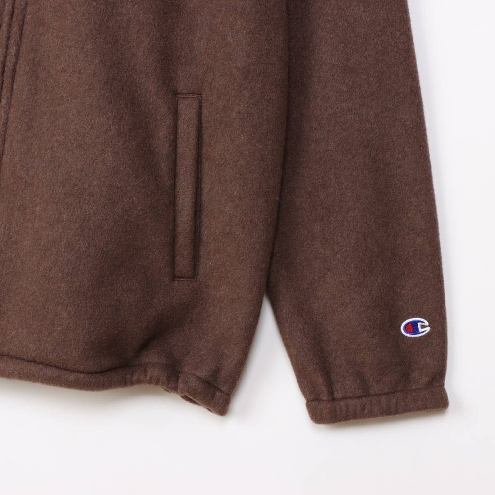這款拉鍊外套採用聚酯纖維和人造絲混紡的抓絨布料製成,具有人造絲特有的柔軟質感。左胸處繡有與衣身同色的 Champion® 標誌。外套正面兩側均設有口袋,左胸處還有拉鍊口袋。下擺兩側配有彈性抽繩,方便調整尺寸。